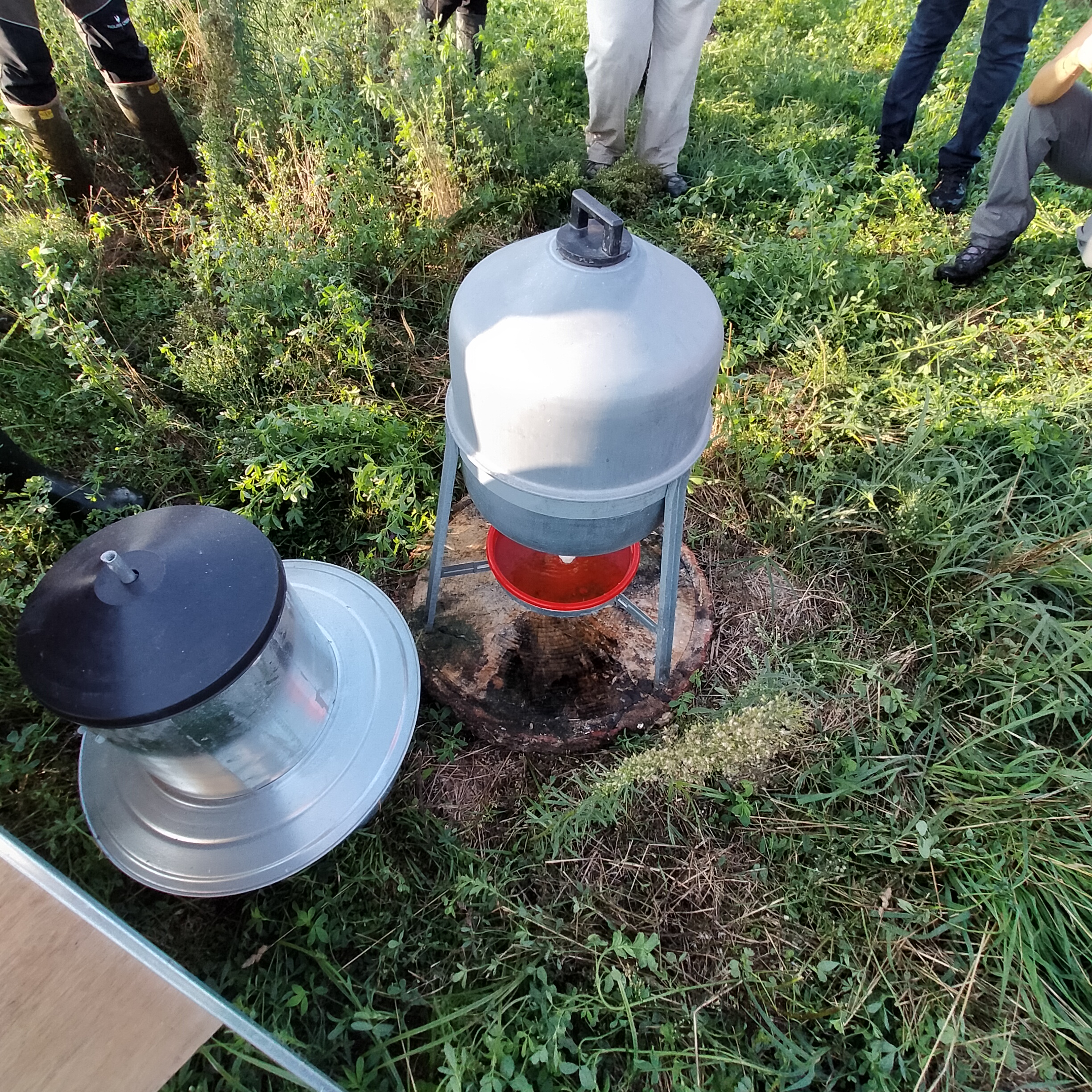Parmi les nombreuses bonnes pratiques de gestion de la faune apprises en France, il y a celle des laveurs de troncs d’arbres positionnés près des mangeoires supplémentaires à la place des socles en béton.