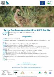 La nostra terza Conferenza scientifica – ancora in modalità online a causa del perdurare dell’emergenza Covid19 – si terrà il 18 gennaio prossimo dalle 15,30 alle 17,15 e sarà dedicata non solo a fare al punto della situazione delle azioni di progetto, ma verrà arricchita anche dai preziosi contributi da parte di coloro che esperienze simili di reintroduzione e miglioramento ambientale le hanno già messe in atto.